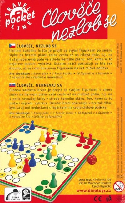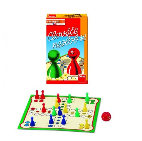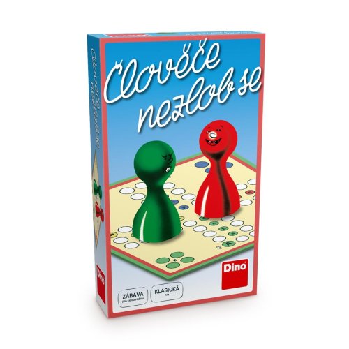 Hra Človeče nehnevaj sa pre 2 - 4 hráčov vhodná od 6 rokov. Balenie obsahuje 1 herný plán, 16 figúrok v 4 farbách, 1 hraciu kocku s obrázkami, 1 pravidlá.