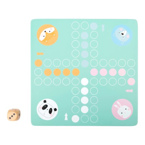 Ktoré zvieratko sa ako prvé dostane do svojho domčeka? Vyskúšajte šikovnú hru v pastelových farbách s drevenými figúrkami v tvare zajaca, pandy, medveďa a líšky. Hod kockou udáva, koľko krokov môže daná figúrka urobiť. Vzrušujúca kompaktná spoločenská hra v moderných farbách. Rozmery: 20 x 20 x 1 cm Rozmery figúrky: 4 cm, O 1,5 cm Vek: 4+ Materiál: drevo