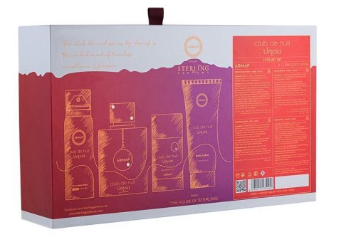Club De Nuit Untold značky Armaf je neodolateľná ambrová parfémová voda pre mužov aj ženy. Kombinácia šafranu a jazmínu otvára kompozíciu a vedie nás k teplému a pohodlnému srdcu ambry a ambrového dreva. Jedľový balzam dodáva základným tónom návykový nádych spolu s upokojujúcou drevitou cédrovou stopou. Luxusná nová vôňa, ktorá vás úplne pohltí. Vôňa bola uvedená na trh v roku 2022. Súčasťou sady je: