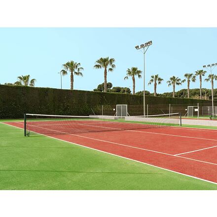 Tenisové siete radu Merco sú vyrobené od renomovaného európskeho výrobcu v takej kvalite, aby spĺňali požiadavky normy EN 1510. Tenisová bezuzlová sieť Merco Club TN30 je vhodná pre tenisové kluby a rekreačných hráčov. Sieť je vyrobená z vysoko pevného, bezuzlového polypropylénu, ktorý je odolný voči UV a poveternostným vplyvom. Vďaka tomu je sieť vhodná na použitie v hale aj na vonkajších kurtoch. Rozmery siete sú 12,8 x 1,07 m, veľkosť oka 35 mm a hrúbka 3 mm. Horná biela PES páska pridáva sieti dlhú životnosť. Sieť sa napína pomocou oceľového lanka, ktoré je možné jednoducho skrátiť. Parametre: - odolný PP materiál - rozmery: 12,8 x 1,07 m - hrúbka: 3 mm - veľkosť oka: 35 mm - horná biela PES páska - oceľové lanko, ktoré je možné skrátiť, dĺžka 14 m - pre indoor aj outdoor použitie