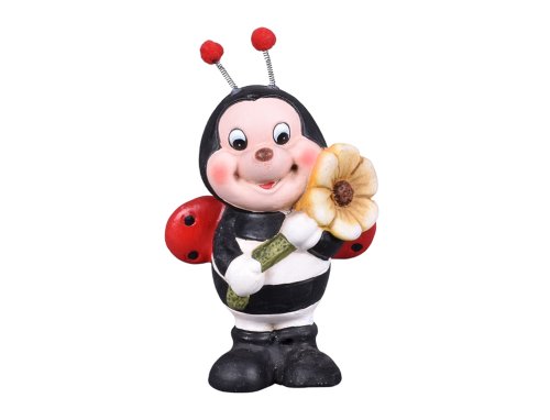 Dekorácia v podobe čmeliaka s kvetinou. Vhodná do interiéru aj exteriéru. Vhodná sezóna: jar, leto. Materiál: terakota. Rozmery: šírka 11 cm, hĺbka: 7 cm, výška: 17 cm. Farba: mix farieb.