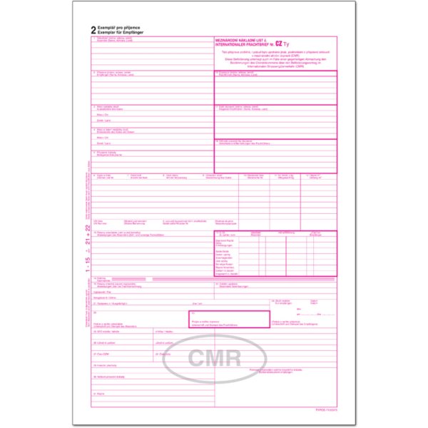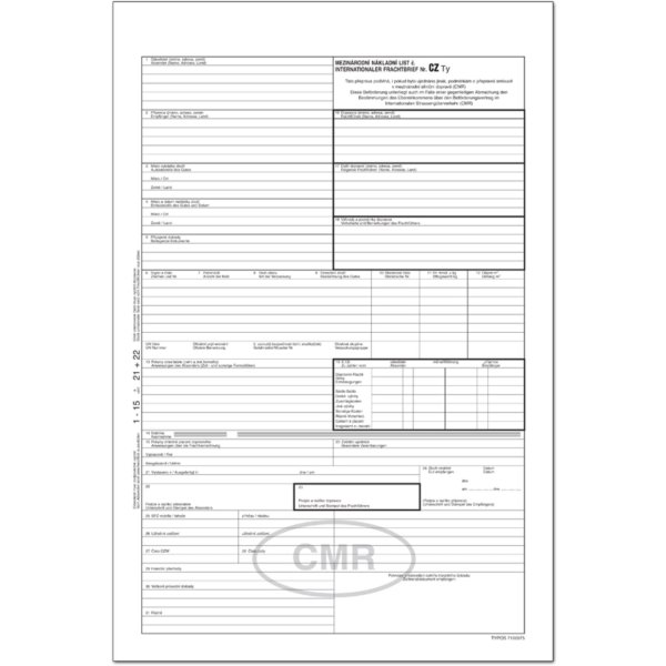 CMR, medzinárodný nákladný list, ČJ/NJ