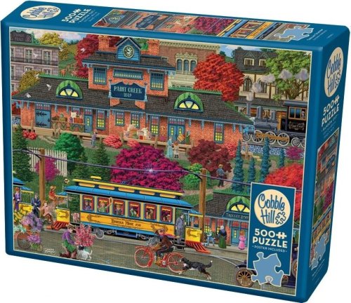 Raznica puzzle COBBLE HILL nekopíruje štandardnú mriežku, rohy a hrany dielikov nie sú vždy v jednej osi a dieliky majú neobvyklý tvar. Obtiažnosť puzzle je tak vyššia ako pri klasickej mriežkovej raznici, ktorú používajú poprední výrobcovia v Európe. Súčasťou balenia je aj predloha o veľkosti 30,5 x 22,9 cm. Rozmer zloženého puzzle cca 67,6 x 48,9 cm