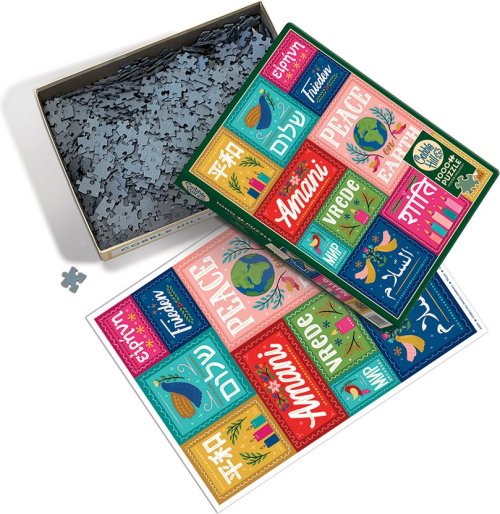 Mier si prajeme v akejkoľvek dobe. Puzzle oslavuje mier po celom svete. Každý z farebných blokov vyjadruje slovo mier v inom jazyku. Horný rad: japončina, hebrejčina, gréčtina, nemčina Uprostred: svahilčina (červená), ruština, ukrajinčina, a ďalšie slovanské jazyky využívajúce cyriliku (tyrkysová), afrikánčina, holandčina (zelená), angličtina Spodný rad: arabčina, hindčina HILL nekopíruje štandardnú mriežku, rohy a hrany dielikov nie sú vždy v jednej osi a dieliky majú neobvyklý tvar. Obtiažnosť puzzle je tak vyššia ako pri klasickej mriežkovej raznici, ktorú používajú poprední výrobcovia v Európe. Súčasťou balenia je aj predloha o veľkosti 31,6 x 22,9 cm. Rozmer zloženého puzzle cca 48,9 x 67,6 cm