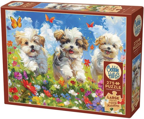 Puzzle s extra veľkými dielikmi! Kolekcia Easy Handling od výrobcu COBBLE HILL je výborným riešením pre milovníkov puzzle, ktorí majú problémy so zrakom, pre staršie vekové skupiny a deti. Dieliky s priemernou veľkosťou okolo 3 cm uľahčujú manipuláciu a slúžia na precvičovanie motorických zručností. Raznica puzzle COBBLE HILL nekopíruje štandardnú mriežku, rohy a hrany dielikov nie sú vždy v jednej osi a dieliky majú neobvyklý tvar. Obtiažnosť puzzle je tak vyššia ako pri klasickej mriežkovej raznici, ktorú používajú poprední výrobcovia v Európe. Súčasťou balenia je aj predloha. Rozmer zloženého puzzle cca 67,7 x 48,9 cm