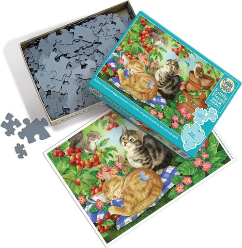 Skladá celá rodina! Jedinečnosť rodinného puzzle od výrobcu Cobble Hill spočíva v tom, že balenie obsahuje dieliky v troch odlišných veľkostiach. Dieliky majú malú, strednú a veľkú veľkosť a skladanie je tak pohodlné pre deti, rodičov i starých rodičov. V jednej časti obrázku sú veľké dieliky, ktoré sú vďaka svojim rozmerom vhodné pre menšie deti. Na druhej strane skladaného motívu sú malé dieliky, vhodné pre dospelých a väčšie deti, ktoré sú už zvyknuté skladať puzzle. Prostredná časť puzzle obsahuje dieliky strednej veľkosti, na týchto dielikoch ide zreteľne vidieť skladaný motív a zostavovanie obrázku je tak vhodné pre staršie deti, babičku aj deduška. Veľkosti dielikov: veľké cca 6 cm stredné cca 3,5 cm malé cca 2 cm Raznica puzzle COBBLE HILL nekopíruje štandardnú mriežku, rohy a hrany dielikov nie sú vždy v jednej osi a dieliky majú neobvyklý tvar. Obtiažnosť puzzle je tak vyššia ako pri klasickej mriežkovej raznici, ktorú používajú poprední výrobcovia v Európe. Súčasťou balenia je aj predloha o veľkosti 31,6 x 22,9 cm. Rozmer zloženého puzzle cca 67,6 x 48,9 cm