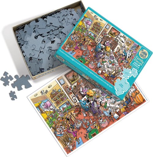 Skladá celá rodina! Jedinečnosť rodinného puzzle od výrobcu Cobble Hill spočíva v tom, že balenie obsahuje dieliky v troch odlišných veľkostiach.
