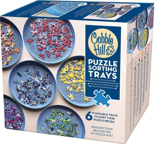 Preosiať! Triediť! Ukladať! Príslušenstvo pre všetkých priaznivcov puzzle! Triedič na puzzle - to je šesť praktických nádob v tvare tácky: - prehľadné triedenie puzzle podľa tvaru alebo farieb - po skladaní je možné priehradky jednoducho naskladať na seba (stohovať) - triedič aj s dielikmi je možné uschovať späť do krabice, zaberajú menej miesta a dieliky sa nestratia Balenie obsahuje 6 ks, priemer 20,3 cm. Triedič na puzzle COBBLE HILL má kapacitu 1000 dielikov, možno ho využiť aj pri skladaní väčších puzzle (pre roztriedenie časti dielikov).