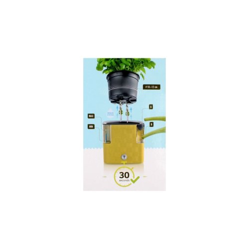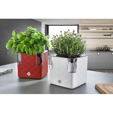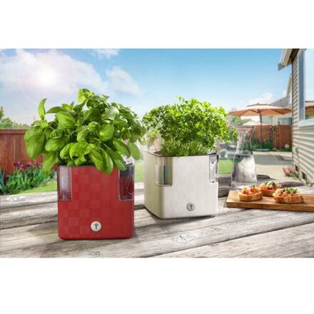 Dizajnový samozavlažovací kvetináč Cobble je ideálny na pestovanie byliniek a rastliniek v domácom prostredí. Výška kvetináča vyrobeného z odolného plastu je 14 cm, šírka je 14,5 cm. Priemer otvoru na vloženie kvetináča je 12 cm (vhodné pre sadbové kvetináče s horným priemerom od 10 do 12 cm). Vlaha je rastlinám postupne dodávaná vďaka zavlažovaciemu systému Aqua System – do sadbového kvetináča sa pomocou dvoch textilných knôtov (ktoré sú súčasťou balenia) privádza voda zo spodného zásobníka. Vodu pritom nenalievate zhora priamo do kvetináča, ale zo strany do zavlažovacieho otvoru. Na ďalšom rohu kvetináča sa nachádza ryska s ukazovateľom objemu vody. Pokiaľ chcete mať kvetináč zavesený na stene alebo na balkónovom zábradlí, môžete si prikúpiť držiak na kvetináč Cobble, určený priamo pre tento typ kvetináča. V prípade potreby ponúkame ku kvetináči Cobble aj náhradné zavlažovacie knôty.