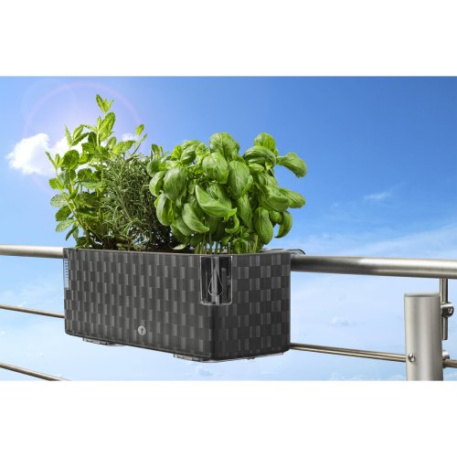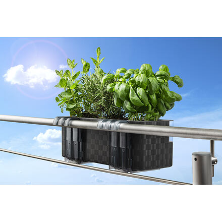 Dizajnový samozavlažovací kvetináč Cobble Trio, pre tri jednotlivé kvetináče, je ideálny na pestovanie byliniek a rastliniek v domácom prostredí. Výška kvetináča vyrobeného z odolného plastu je 14 cm, šírka je 14,5 cm a dĺžka 40 cm. Priemery otvorov na vloženie troch kvetináčov sú 12 cm (vhodné pre sadbové kvetináče s horným priemerom od 10 do 12 cm). Vlaha je rastlinám postupne dodávaná vďaka zavlažovaciemu systému Aqua System – do sadbového kvetináča sa pomocou dvoch textilných knôtov (v balení je ich celkom 6) privádza voda zo spodného zásobníka. Vodu pritom nenalievate zhora priamo do kvetináča, ale zo strany do zavlažovacieho otvoru. Na ďalšom rohu kvetináča sa nachádza ryska s ukazovateľom objemu vody. Pokiaľ chcete mať kvetináč zavesený na stene alebo na balkónovom zábradlí, môžete si prikúpiť držiaky na kvetináč Cobble, určené priamo pre tento typ kvetináča. V prípade potreby ponúkame ku kvetináči Cobble Trio aj náhradné zavlažovacie knôty.