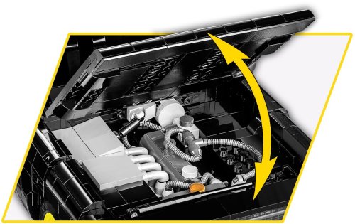 Postavte si model legendárny model "Čiernej vdovy" v mierke 1:12. Zostavený model meria na dĺžku 38 cm! Čaká vás množstvo prekvapení: pohyblivý volant, ktorým môžeme otáčať kolesami, pánty na otváranie dverí, dokonalá karoséria s ozdobnými prvkami. Pod výklopnou kapotou je umiestnený motor. Početné detaily, ako sú kľučky, svetlá a hodiny, vytvárajú dokonalý celok. Závodné číslo 201 je vytlačené na karosérii vozidla, rovnako ako ďalšia grafika, kvalitnou stálofarebnou tlačou. Už žiadne samolepky. Balenie obsahuje 2 078 kociek, neobsahuje figúrky. Športové vozidlo Opel Rekord C je vyrobené pod licenciou Opel.