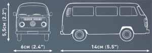 Postavte si model T2, známy ako „Bay Window“ (produkovaný v polovici šesťdesiatych a sedemdesiatych rokov), bol pokračovaním úspechu T1 a bol charakteristický moderným vzhľadom výrazným, zaobleným čelným sklom. Autobus Volkswagen sa stal symbolom slobody a cestovania. V turistickej a kempingovej verzii sa stala milovaným dopravným prostriedkom pre milovníkov cestovania po celom svete. V priebehu rokov si Volkswagen Bus získal status kultového vozidla, ktorý sa objavil v nespočetných videách, hudobných videách a reklamách. Dnes je jedným z najznámejších vozidiel na svete a jeho klasický dizajn stále priťahuje zberateľov a automobilových nadšencov. Balenie obsahuje 145 kociek.