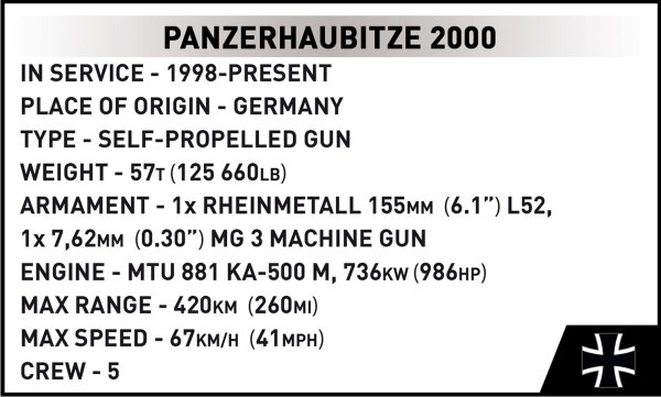 Postavte si model Panzerhaubitze 2000 je jedným z najpokročilejších delostreleckých systémov na svete. Vďaka svojej technológii, dosahu a presnosti hrá PzH 2000 kľúčovú úlohu v moderných bojových operáciách a poskytuje účinnú palebnú podporu. Je symbolom moderného delostrelectva a dokladom vyspelej technológie nemeckého zbrojného priemyslu. Balenie obsahuje 1006 kociek.