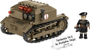 Postavte si model TK-3 bol jedným z prvých obrnených vozidiel, ktoré bolo dostatočne ľahké, aby sa pohybovalo po mínových poliach a náročnom teréne. Vďaka maximálnej rýchlosti 40 km/h bol manévrovaný a vhodný pre rýchle manévre. Vybavený 2,5 milimetrovým oceľovým povlakom poskytol základnú ochranu proti ručným ramenám, aj keď nebol schopný čeliť ťažším kanónom. Balenie obsahuje 323 kociek a 1 figúrka.