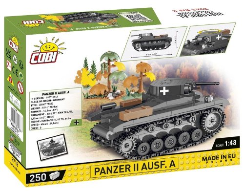 Postavte si model Panzerkampfwagen II nemecký ľahký tank používaný v prvých rokoch druhej svetovej vojny. Do roku 1941 to bol hlavný tank obrnených divízií. Od roku 1942 kvôli slabosti výzbroje stratil na význame. Bol používaný na prieskumné a protipovstalecké úlohy. Balenie obsahuje 250 kociek.