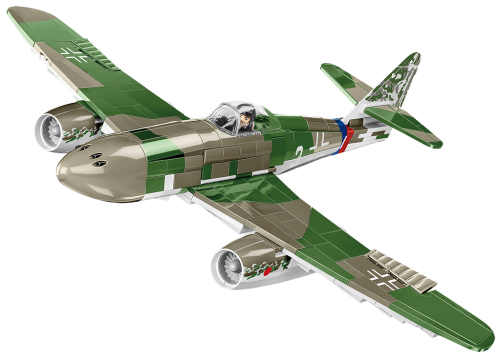 Postavte si model Messerschmitt Me 262, čo bolo vôbec prvé stíhacie lietadlo v boji! Vyrábal sa v Nemecku, do služby vstúpil v roku 1944 ako interceptor (obranné stíhacie lietadlo). Boli tiež vytvorené bombové a prieskumné verzie. Nemeckí piloti mu hovorili Sturmvogel a medzi spojencami bol známy ako Turbo. Neskoré uvedenie lietadla do prevádzky znamenalo, že počas vojny nehralo významnú úlohu. Messerschmitts Me 262 dosiahol 900 zostrelov so stratami 100 strojov. Náš model je vytvorený podľa skutočného stroja, ktorý nájdete v Deutsches Museum v Mníchove. Riadil ho Hans Guido Mutke, ktorý sa v posledných dňoch vojny dostal do Švajčiarska, kde bol internovaný. O niekoľko rokov neskôr sa stroj vrátil do Nemecka ako múzejný exponát. Balenie obsahuje 390 kociek stavebnice a 1 figúrku pilota.