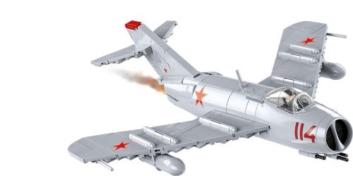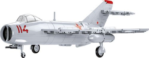 MIG-17 je prúdové stíhacie lietadlo sovietskej výroby, ktoré slúžilo vo vzdušných silách 40 krajín sveta a stalo sa tak jedným zo symbolov Studenej vojny. Lietadlo bolo postavené v roku 1949. Jednalo sa o jednomiestny jednomotorový stredoplošník s celokovovou duralovou konštrukciou so šípovitým krídlom. Charakteristickým znakom boli tri aerodynamické plôtiky na každom z krídiel. V prednej časti lietadla bol vstup vzduchu k motoru, rozdelený zvislou prepážkou na dva kanály po stranách. Kabína pilota bola presklená a vzduchotesná, vybavená výsuvnou sedačkou. Pohon bol jediným prúdovým motorom umiestneným vzadu. Stála výzbroj zahŕňala dva kanóny kalibru 23mm NR-23 (každý s 80 nábojmi) a jeden kanón N-37D kalibru 37 mm (so 40 nábojmi). Lietadlo mohlo tiež niesť bomby namiesto prídavných palivových nádrží. Toto mimoriadne obľúbené a úspešné lietadlo sa dočkalo mnohých vývojových verzií. MIG-17 pod názvom LIM-5 sa od roku 1956 vyrábal aj v Poľsku. Postavte si tento model v mierke 1:32. Zostavený model meria 36 x 30 x 11 cm. Balenie obsahuje 568 kociek stavebnice a figúrku pilota.