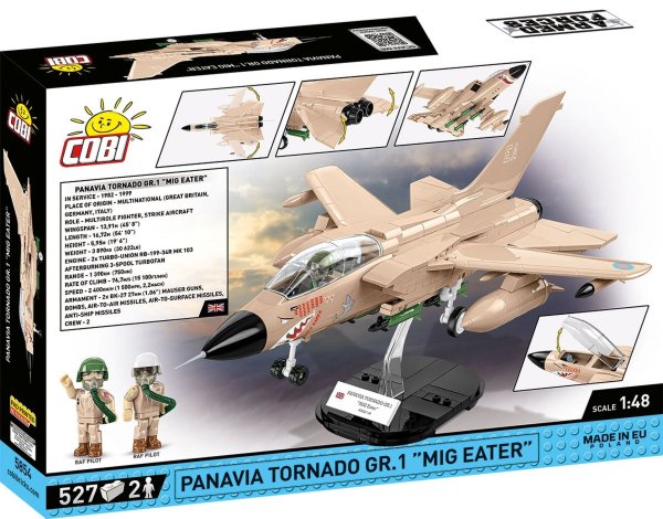 Postavte si model slávnej britskej viacúčelovej stíhačky Panavia Tornado s mimoriadnou históriou! Prezývka „MIG EATER“ (migojed) odkazuje k slávnemu príbehu o zničení irackého lietadla počas počiatočného obdobia prvej vojny v Perzskom zálive v roku 1990. Sada tiež obsahuje dve unikátne figúrky, ktoré odkazujú na dvojicu britských pilotov zajatých Iračanov počas rovnakého konfliktu. Po prepustení boli piloti vyfotografovaní s lietadlom „Mig Eater“. Balenie obsahuje 527 kociek stavebnice a 2 figúrky pilotov.