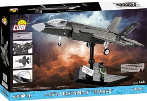 Postavte si model F-35A "Husarz" od spoločnosti COBI - modernú stíhačku poľského letectva v mierke 1:48 F-35A Lightning II "Husarz" je unikátna stavebnica od spoločnosti COBI, ktorá vám umožní postaviť model stíhačky piatej generácie - jedného z naozajstných es v nebi, ktoré sa čoskoro. Moderné technológie a história v jednom modeli F-35A je americký jednomiestny viacúčelový stíhač najnovšej generácie, vyvinutý v rámci programu Joint Strike Fighter. Navrhnutý konzorciom spoločností Lockheed Martin, Northrop Grumman a BAE Systems, vyniká svojimi inovatívnymi technologickými riešeniami a schopnosťou operovať vo všetkých bojových podmienkach. V roku 2024 poľské ministerstvo národnej obrany oficiálne pomenovalo náš F-35A „Husarz“, čo je odkaz na hrdú rytiersku tradíciu. Do roku 2030 bude do Poľska dodaných celkom 32 lietadiel, ktoré nahradia starnúce MiGy-29 a Su-22. F-35 „Husarz“ sa stane kľúčovým prvkom obrany proti hrozbe, ktorú predstavujú ruské Su-35 a Su-57. Čo odlišuje F-35A „Husarz“? Toto futuristické lietadlo ponúka nielen technológiu stealth – neviditeľnosť pre radar – ale aj pôsobivý výkon vďaka svojmu výkonnému motoru Pratt & Whitney F135-PW-100 s prídavným spaľovaním. F-35 bez námahy dosahuje nadzvukovú rýchlosť a pritom je ťažké ho odhaliť . Jeho bojové schopnosti zahŕňajú nielen vzdušný boj, ale aj bombardovanie, prieskum a elektronické rušenie – to všetko v rámci jednej misie. Ide o skutočný viacúčelový stíhač budúcnosti. Objavte kľúčové vlastnosti stavebnice F-35A "Husarz" od COBI: