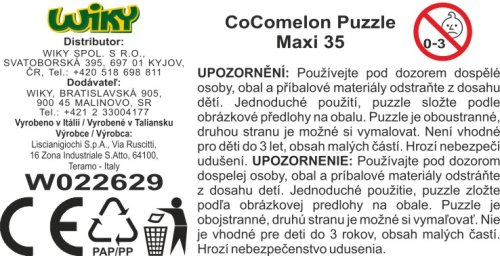 Lisciani CoComelon Puzzle MaxiFloor 35 obojstranné 2v1. Obojstranné puzzle, 35 dielikov. Rozmery 70 x 50 cm. Predná strana s farebným obrázkom, na zadnej strane predkreslený na vymaľovanie.