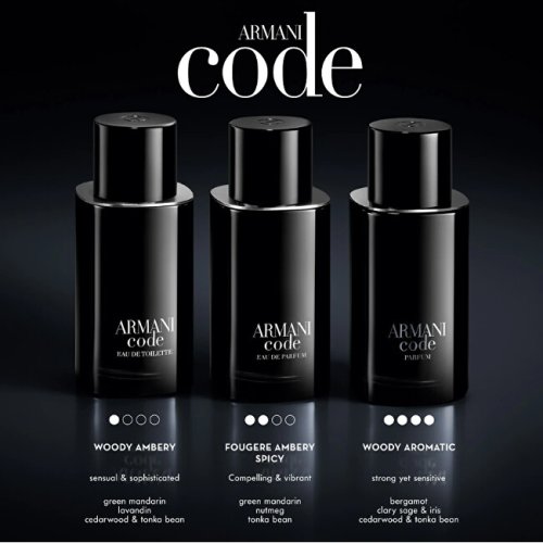 Giorgio Armani Code Pour Homme - ikonická vôňa, ktorá zosobňuje mužskú eleganciu, charizma a prirodzenú sebaistotu. Nová parfumovaná voda prináša moderné poňatie klasického štýlu. Je určená mužovi, ktorý má dokonalý vkus, vystupuje s ľahkosťou gentlemana a zanecháva za sebou dojem vycibrenej rafinovanosti. Vôňa sa otvára sviežimi, ľahko pikantnými tónmi zelenej mandarínky, ktoré dodávajú energiu a iskru. Postupne sa rozvíja do tepla koreneného srdca muškátového orieška, ktorý prináša hĺbku a mužnú zmyselnosť. Základ tvorí tonka bôby so svojou charakteristickou medovo-tabakovou stopou, ktorá vôni prepožičiava hrejivosť a nezabudnuteľný podpis. Vôňa bola uvedená na trh v roku 2024. Súčasťou sady je: