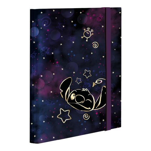 Školský box s plochou gumičkou a vnútornou fixačnou chlopňou, zladený s kolekciou Stitch Gold. Kvalitné a odolné spracovanie vhodné na denný prenos školských zošitov a iných dokumentov.