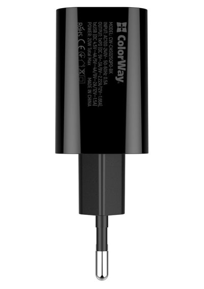 Sieťový adaptér s výstupom 1x USB typ A a 1x USB typ C , podporou Quick Charge 3.0 a výstupným výkonom 20 W.