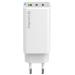 Kompaktná a výkonná sieťová nabíjačka s jedným USB a dvoma USB-C portami , podporujúca rýchle nabíjanie až do výkonu 65 W. Vďaka technológii GaN je nabíjačka menšia, ľahšia a efektívnejšia ako bežné adaptéry. Podporuje široké spektrum rýchlonabíjacích protokolov vrátane Apple Fast Charge, PD 2.0 a 3.0 PPS 35W, Huawei FCP, Quick Charge 2.0/3.0/4.0+, Samsung SFC/AFC a ďalších. Inteligentný čip USB Auto ID rozpozná pripojené zariadenie a automaticky prispôsobí napätie a prúd až do 5 A pre maximálnu efektivitu nabíjania. Odolné telo je vyrobené z nehorľavého ABS plastu a samozrejmosťou sú aj ochrany proti prepätiu, skratu, prehriatiu a preťaženiu. Ideálne pre domáce aj cestovné použitie.