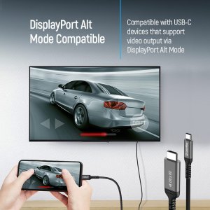 Pre správnu funkciu je nutné, aby pripájané zariadenie podporovalo DisplayPort Alt Mode cez USB-C port. Kompatibilný s modernými notebookmi, tabletmi a smartfónmi s USB-C konektorom.