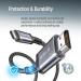Konektory z hliníkovej zliatiny poskytujú dlhú životnosť a spoľahlivé pripojenie. Nylonové opletenie kábla chráni pred mechanickým poškodením a zaisťuje flexibilitu pri používaní.