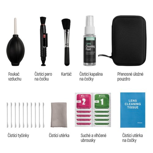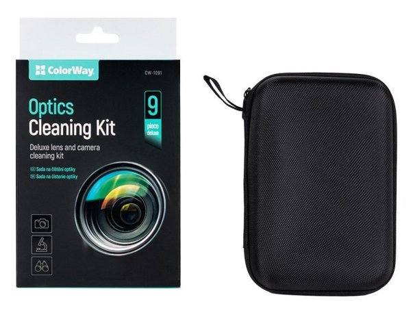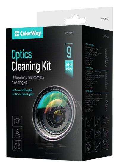 Čistiaca sada ColorWay Optics . Táto 9dielna luxusná sada na čistenie objektívov a fotoaparátov obsahuje všetko potrebné na správnu údržbu a starostlivosť o váš optický mikroskop, digitálny fotoaparát, objektívy a ďalšie príslušenstvo.