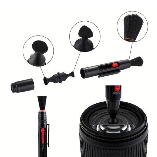 Čistiaca ceruzka na objektívy. Kompaktná ceruzka na čistenie objektívov. Jedna strana s mäkkým vysúvacím štetcom na odstraňovanie prachu. Druhá strana má obojstranný grafitový nástavec na čistenie objektívov rôznych veľkostí.