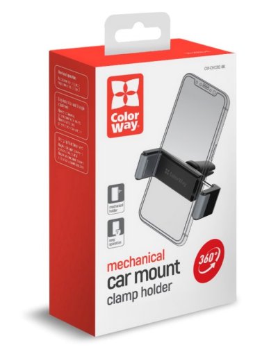Praktický držiak pre mobilný telefón určený na upevnenie do ventilačnej mriežky . Nastavenie šírky pomocou posuvného mechanizmu zaručuje kompatibilitu s takmer akýmkoľvek zariadením. Pre nastavenie do požadovaného uhla disponuje kĺbom otočným o 360 ° . Mäkká povrchová úprava eliminuje vznik škrabancov a odrenín na tele smartfónu.