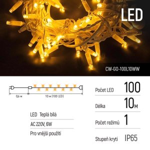 LED vonkajšia svetelná reťaz ColorWay je ideálna na vyzdobenie fasády domu, stromov, stĺpov, zábradlia, schodov a mnoho ďalšieho. 100 LED diód a dĺžka 10 metrov dotvorí rozprávkovú atmosféru. Príjemné teplé biele svetlo dodá zvláštne kúzlo. Reťaz je chránená pred vlhkosťou a je schopná odolávať teplotným zmenám, čo zaručuje jeho bezpečné použitie.