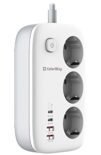 Predlžovací prívod s tromi Schuko zásuvkami, dvoma USB portami a dvoma USB-C portami . Je možné s ním teda pripojiť nielen elektrické spotrebiče, ale súčasne nabíjať až štyri mobilné zariadenia z USB portov. Funkcia Auto ID automaticky rozpozná typ pripojeného zariadenia a určí tak vhodný nabíjací prúd. Medzi podporované nabíjacie protokoly patria PD 2.0/3.0 PPS, Quick Charge 2.0/3.0/4.0+, Apple Fast Charge, Huawei FCP/SCP, Samsung SFC/AFC, VOOC a Xiaomi Turbo charge. Privod je vybavený praktickým tlačidlom pre zapnutie a vypnutie . Telo prívodu je vyrobené zo žiaruvzdorného plastu, ktorý odolá teplotám až do 750 °C. Samozrejmosťou je uzemnenie a prepäťová ochrana.