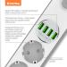Kompaktný predlžovací prívod so štyrmi sieťovými zásuvkami 220 V a štyrmi portami USB 5 V . Môžete s ním teda pripojiť nielen elektrické spotrebiče, ale súčasne nabíjať až 4 mobilné zariadenia z portu USB. Prívod tiež automaticky rozpozná typ pripojeného zariadenia a sám určí najlepší nabíjací prúd pripojeného zariadenia od 0,1 do 2,4 A.