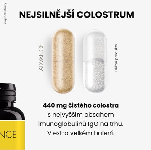 Výživový doplnok Colostrum ADVANCE obsahuje kvalitné prémiové colostrum s vysokým obsahom imunoglobulínov IgG v 1 kapsule . Cel ý výrobný proces prípravku Colostrum ADVANCE je maximálne šetrný a zohľadňuje snahu zachovať v colostri všetky hodnotné aktívne látky. Na konci výroby nasleduje výstupná kontrola suroviny u výrobcu.