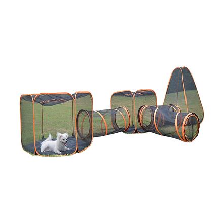 Merco Combi Tunnel je novinkou medzi agility tunelami pre vašich malých štvornohých kamarátov. Vytvorte svojmu psíkovi počas chvíle hraciu plochu a navyše bezpečný priestor, kde ho budete mať pod dozorom. Táto sada 6v1 je unikátna v tom, že každú časť môžete použiť samostatne, spojiť všetky dohromady alebo ich rôzne kombinovať. Spojenie jednotlivých častí je jednoduché pomocou klasických zipsov. Celá sada obsahuje 3 tunely a 3 rôzne ohrádky. Vďaka jednoduchej konštrukcii všetky časti rýchlo rozložíte aj zložíte a následne so sebou celú sadu vezmete kamkoľvek. Parametre: - 3x tunel: 120 x 40 cm - hexagón: dĺžka strany 55 cm, výška 70 cm - kocka: dĺžka strany 65 cm, výška 70 cm - stan: dĺžka základne 70 cm, výška 120 cm - hmotnosť sady: 4 kg - materiál: polyesterová sieťovina + oceľový drôt - súčasťou vak na uskladnenie a prenášanie - pre malé a stredné plemená psov