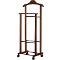 Dvojitý závesný priestor Rôzna výška závesného ramienka a tyče Kolieska Rozmery: 97 x 33 x 29 cm Materiál: drevo Farba: prírodný orech