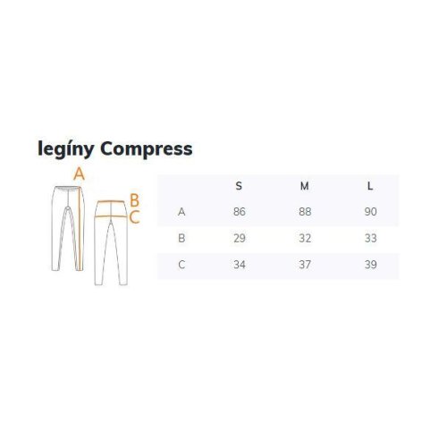 Veľmi pohodlné legíny na cvičenie Compress využijete pri športe, vo voľnom čase aj na domáce nosenie. Legíny majú vyšší pás so širokou rebrovanou gumou. Minimálny počet švov je u týchto legín zárukou pohodlia a voľnosti pri pohybe. V miestach nad kolenami sú legíny opatrené dierkami, ktoré slúžia nielen na odvetrávanie, ale aj ako ozdobný prvok. Nepriehľadné legíny s ombré farebným efektom majú riasenie na zadnej strane, ktoré vytvára push-up efekt. Zloženie: 54% nylon, 34% polyester, 12% spandex. Perte v práčke s podobnými farbami na 30 °C. Rozmery: Veľkosť S dĺžka: 86 cm šírka pása: 29 cm šírka bokov: 34 cm Veľkosť M dĺžka: 88 cm šírka pása: 32 cm šírka bokov: 37 cm Veľkosť L dĺžka: 90 cm šírka pása: 33 cm šírka bokov: 39 cm