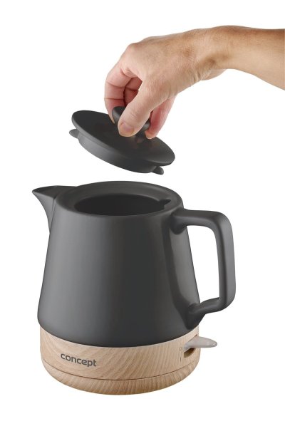 Varná kanvica Concept je vyrobená z kvalitnej, veľmi odolnej a zdravotne nezávadnej keramiky. Tento materiál vyniká veľmi jednoduchou údržbou a izolačnými vlastnosťami, vďaka ktorým udrží vodu dlho horúcu. Keramické veko s praktickým zaistením proti vypadnutiu oceníte pri plnení vodou aj pri údržbe.