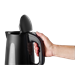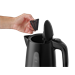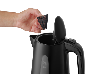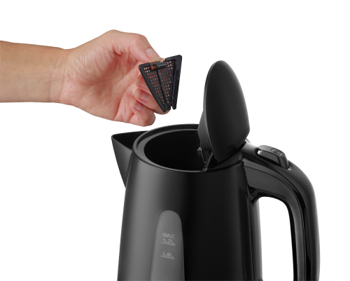 Kanvica je opatrená tlačidlom pre ľahké otvorenie veka a veľkým plniacim otvorom pre pohodlné plnenie vodou. Hladké dno so skrytým vykurovacím telesom zamedzuje usadzovaniu nečistôt. Filter proti vodným usadeninám je vyberateľný, takže ho môžete kedykoľvek podľa potreby vyčistiť. Praktický je aj plne otočný podstavec s priestorom na uschovanie prebytočného kábla, na ktorý môžete kanvicu postaviť z akéhokoľvek uhla.