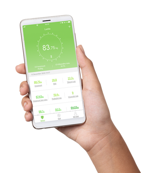 Pre kompletné využitie všetkých funkcií váhy je nutné do mobilného telefónu alebo tabletu stiahnuť aplikáciu Feelfit, ktorá je v češtine a voľne dostupná na Google play (Android) alebo App Store (iOS). Počas váženia sa na LED displeji váhy zobrazí aktuálna hodnota vašej telesnej hmotnosti. Ostatné údaje sa automaticky prenesú pomocou Bluetooth do mobilnej aplikácie, ktorá ich spracuje, vyhodnotí a uloží. Vďaka histórii záznamov môžete sledovať vaše pokroky, posúdiť efektivitu cvičenia, vytvárať si nové ciele a podľa zistených údajov napr. prehodnotiť stravovacie návyky. Aplikácia Feelfit umožňuje synchronizáciu dát aj s inými aplikáciami na sledovanie zdravia - Apple Health, Fitbit, Google Fit a Samsung Health.