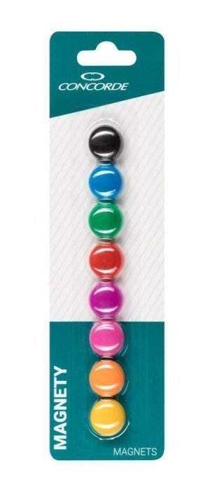Farebné okrúhle magnety s priemerom koláča 20mm. Priemer vnútorného magnetu 1,2mm. Magnety sú vhodné kdekoľvek Vás napadne, napríklad na nástenky, flipcharty, tabule alebo aj chladničky. Balenie obsahuje 8 kusov na blistri.