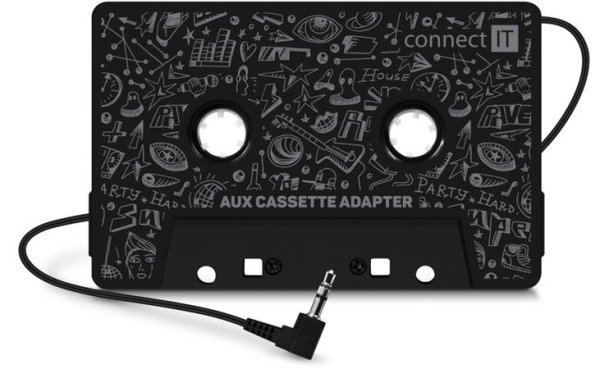 CONNECT IT AUX kazetový adaptér, 3,5 mm jack, ČIERNA