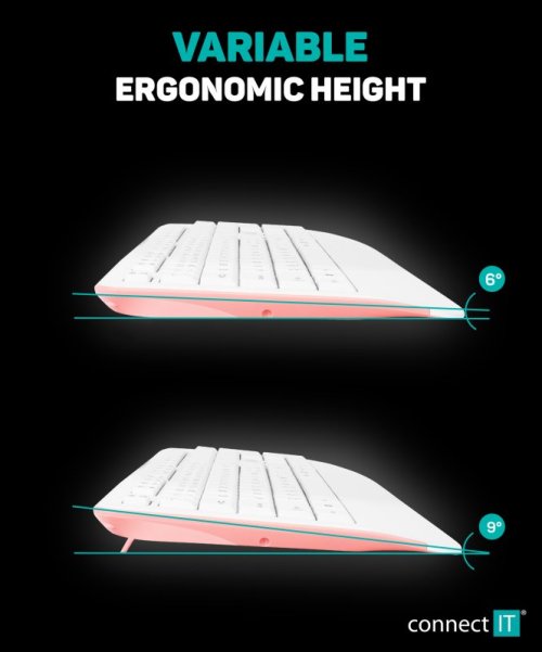 CONNECT IT Combo bezdrôtová bielo-ružová klávesnica + myš, (+1x AAA +1x AA batérie zadarmo), CZ + SK layout