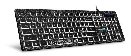 CONNECT IT DOODLE kancelárska drôtová bielo podsvietená USB klávesnica, CZ + SK verzia, čierna