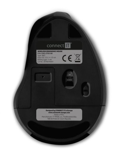 CONNECT IT FOR HEALTH ergonomická vertikálna myš, (+ 1x AA batéria zadarmo), bezdrôtová, ČIERNA
