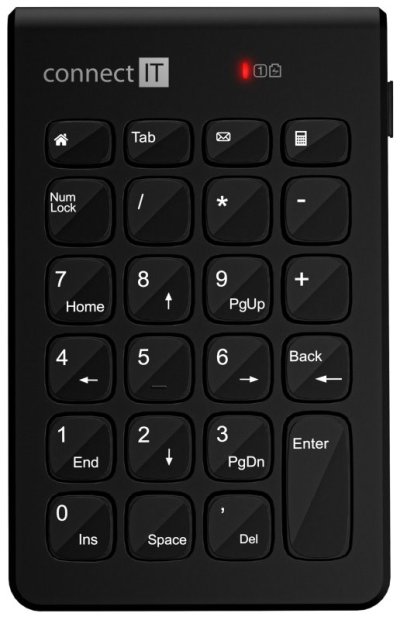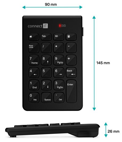 CONNECT IT NumCALC bezdrôtová numerická klávesnica, (+ 1x AAA batéria zadarmo), ČIERNA