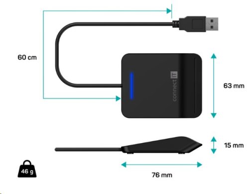 CONNECT IT USB čítačka eObčianok a čipových kariet, ČIERNA